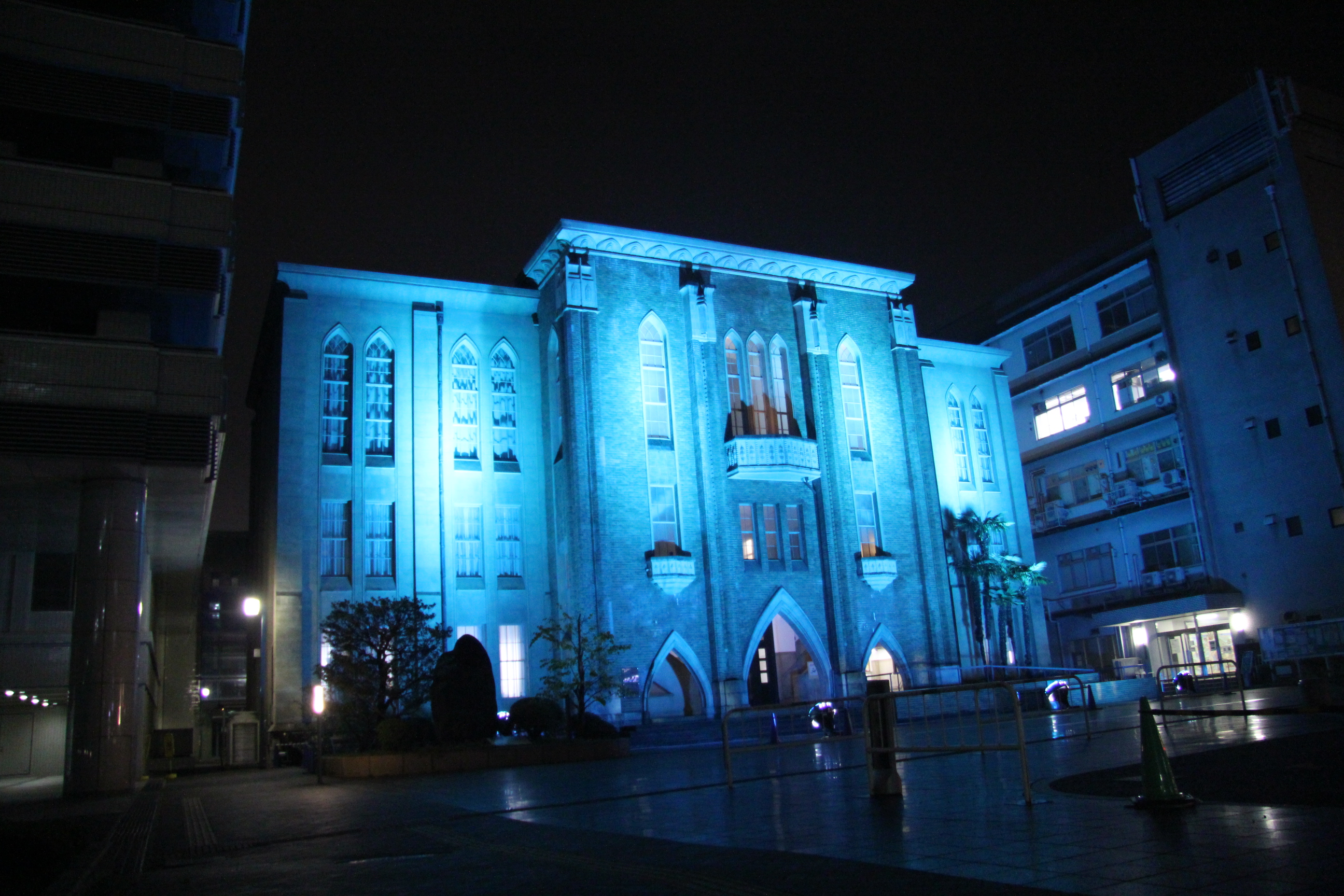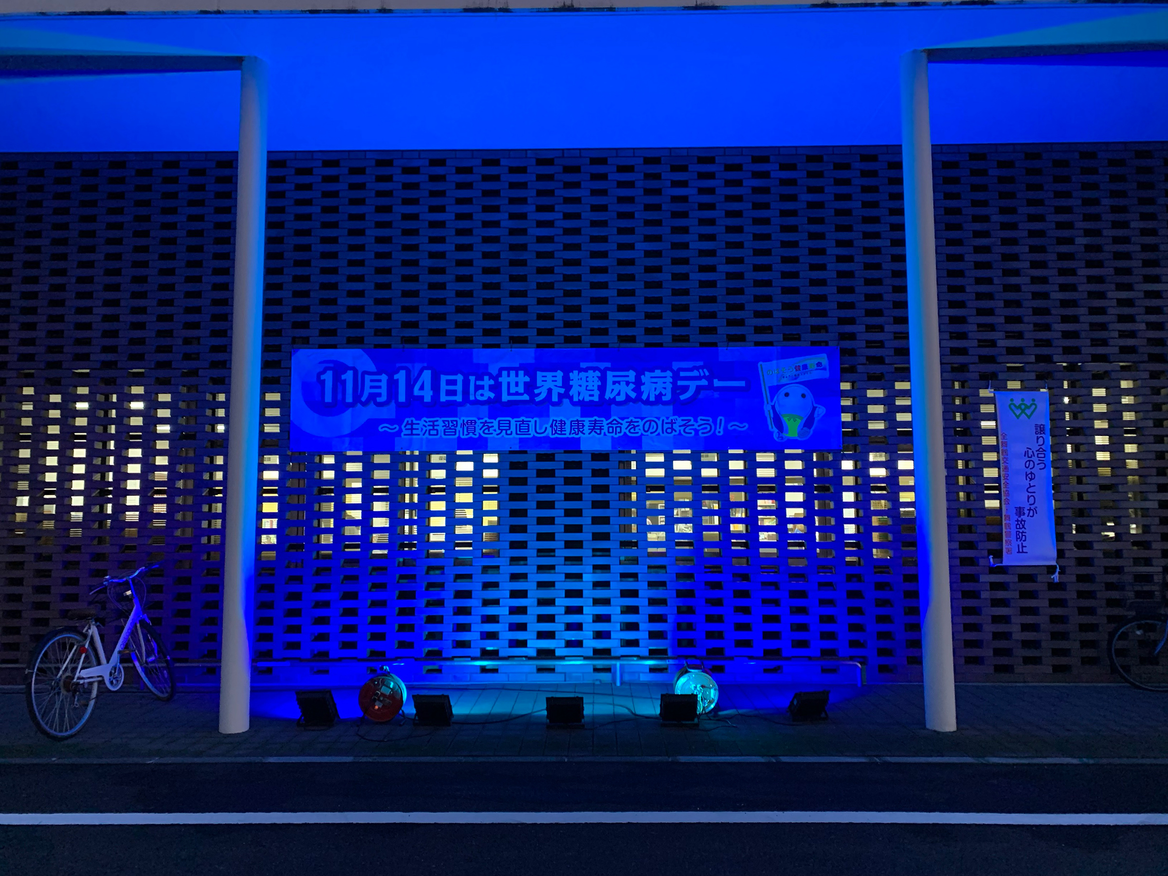 また、「World Diabetes Day(WDD)」(旧世界糖尿病デー)当日には、啓発事業の一環として、府内各所の施設のブルーライトアップを実施する。 |